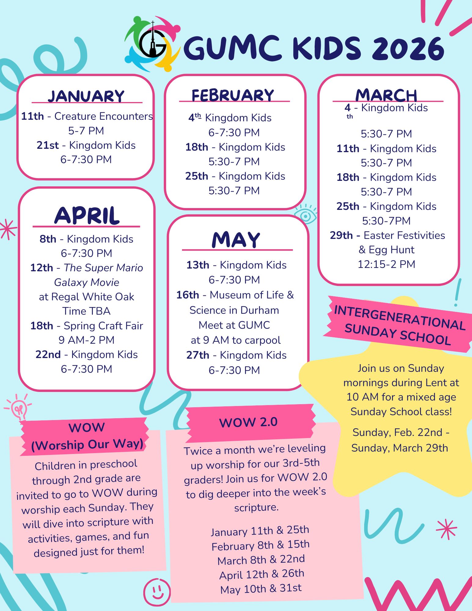Important Dates For Garner UMC Kids